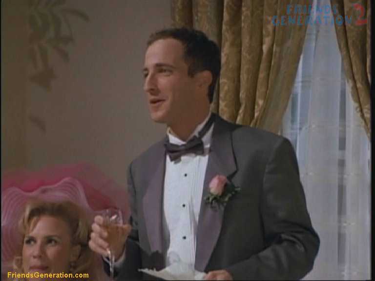 Il porte un toast au mariage de Barry et Mindy et se moque de Rachel qui avait coincé sa robe dans son collant en revenant des toilettes.